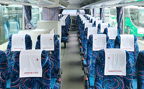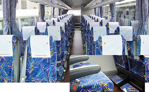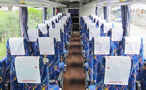 ※ 記載の内容は近鉄バス担当便のものです。多客時の増発便および車両整備等による代替車は、予告なく異なる仕様の車種および座席で運行する場合があります。