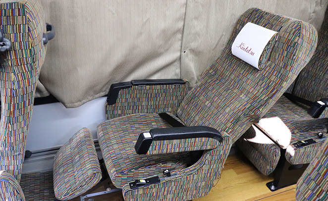ゆったりとしたリクライニングシート&座席仕切りカーテン(3列シート車両のみ)