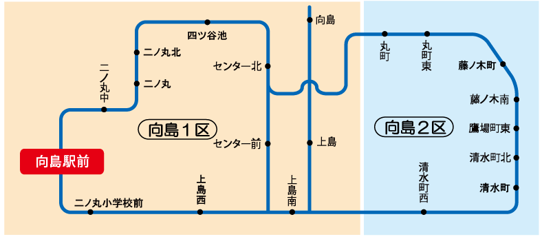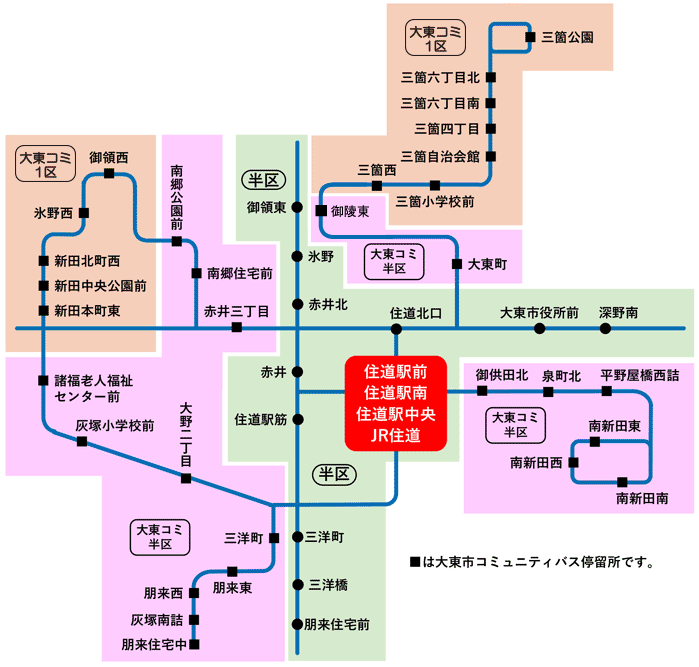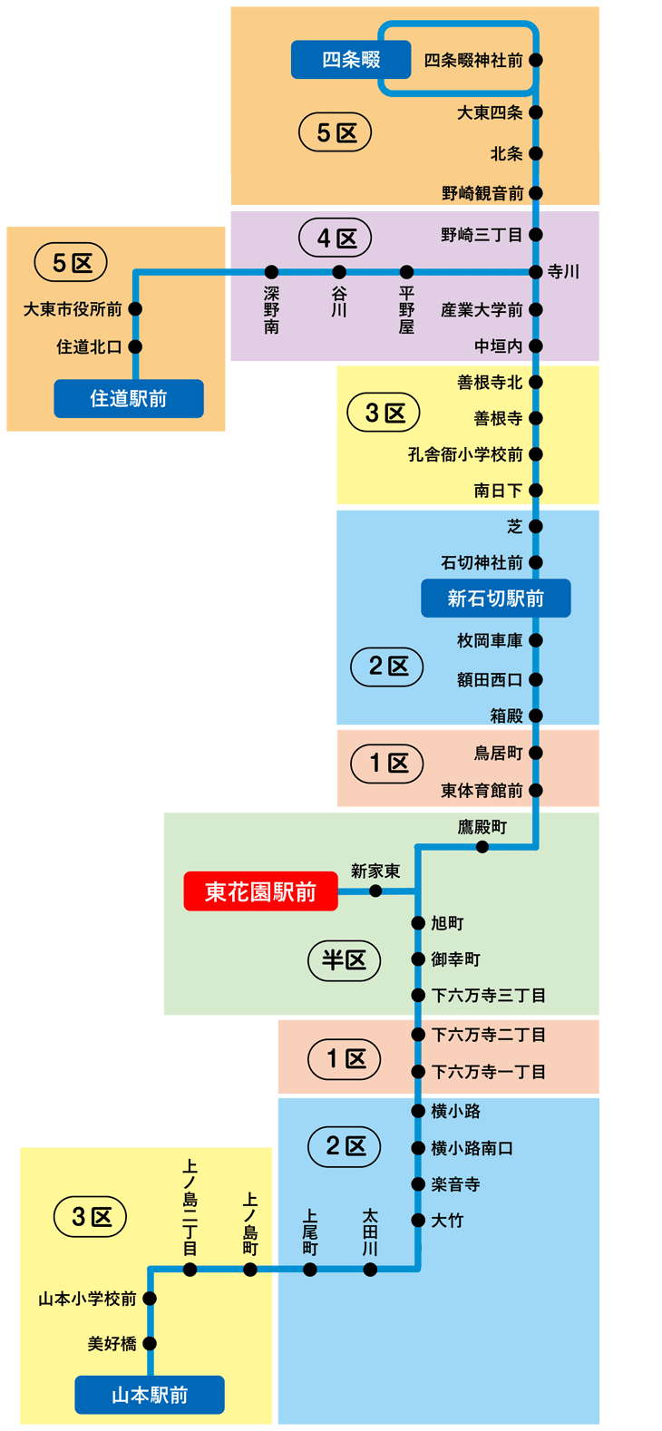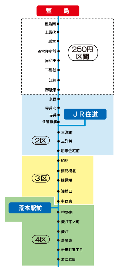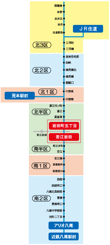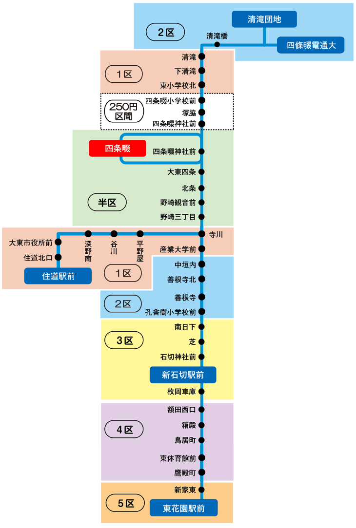 「藤井寺駅~2区 」の定期券をお持ちの場合、藤井寺ゾーンの2区までの範囲で自由に乗り降りが可能です。