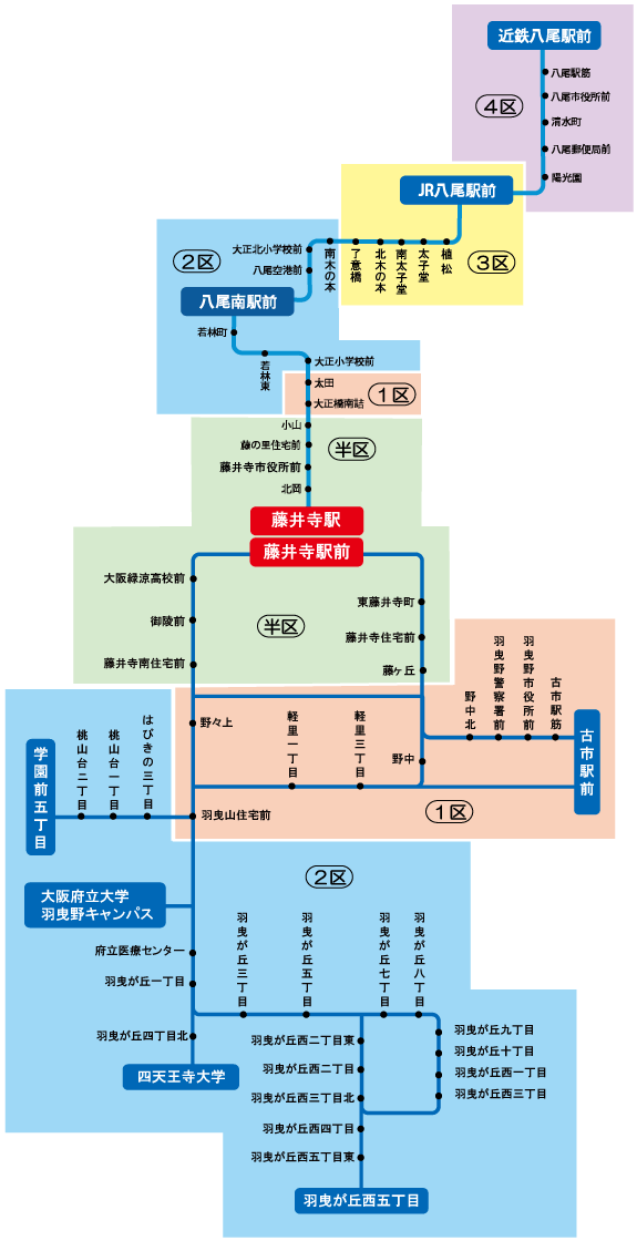藤井寺駅 ⇒八尾南駅前 乗車可〇
