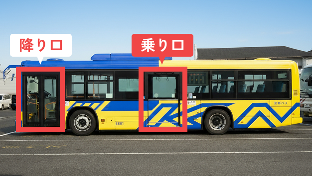 バスの乗り口は、車両後方のドアです。