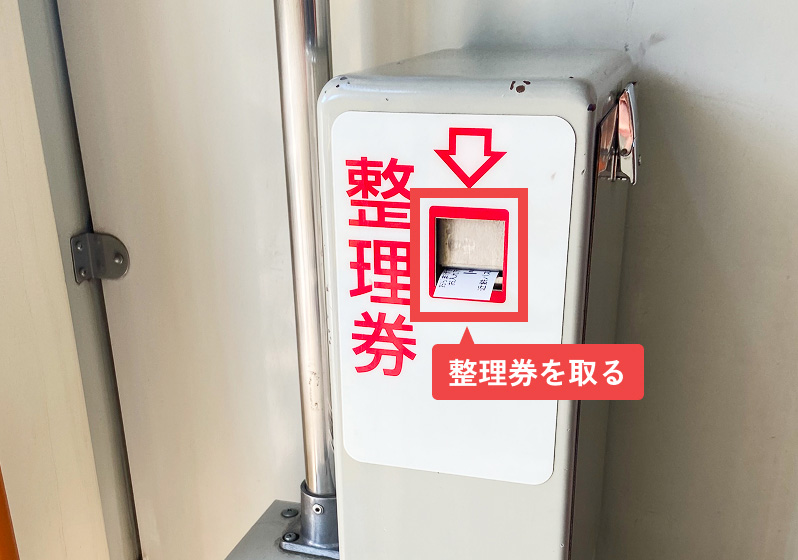 乗るときに、乗り口横にある機械から整理券を取ります。