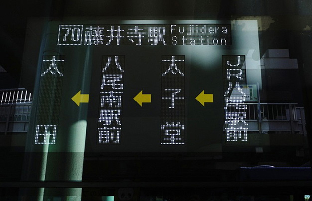 乗る前に、バス前面および側面にある「行先・経由地表示」を確認します。