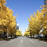 - 沿道のイチョウ並木が美しく、大阪を代表する幹線道路。