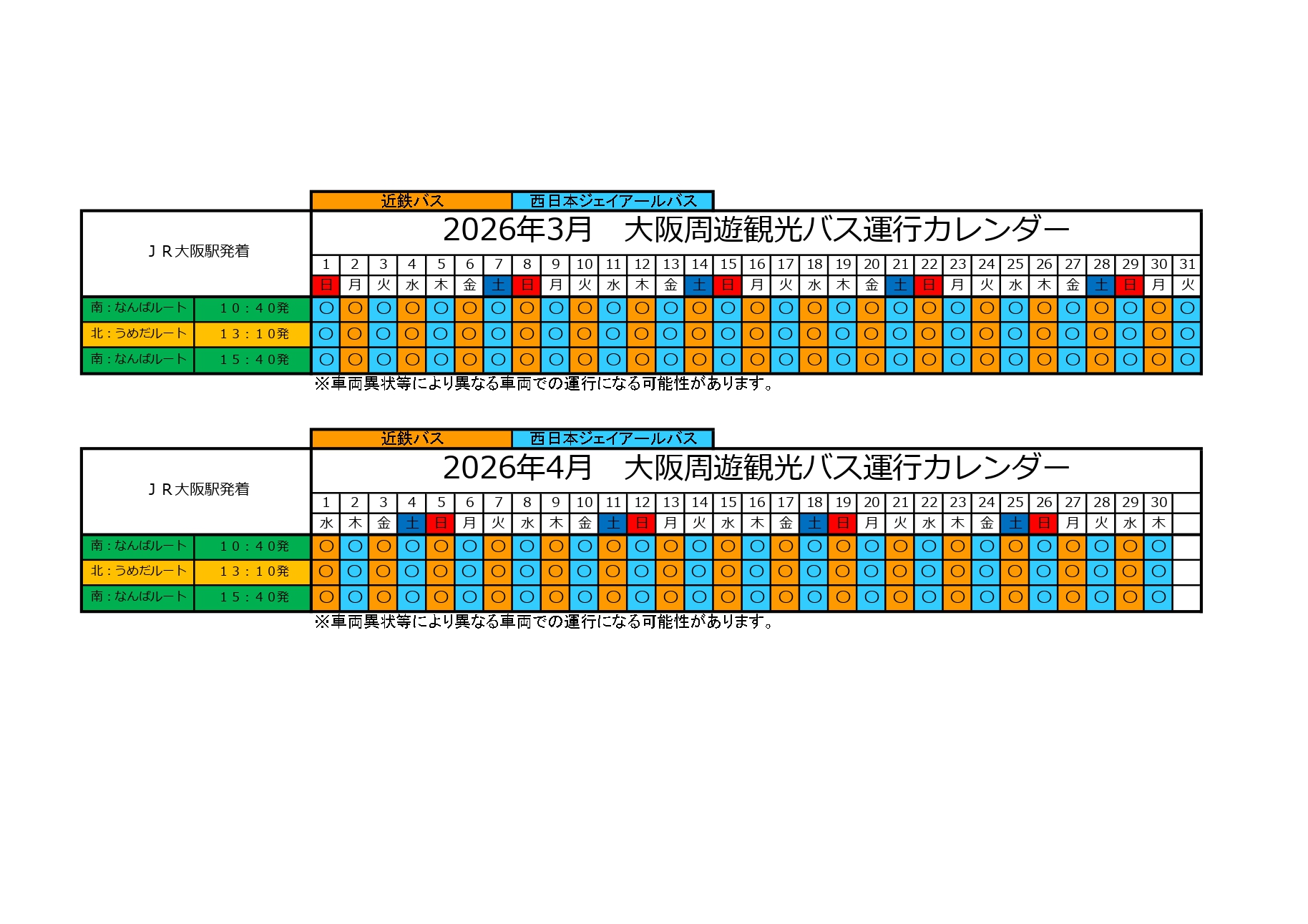 運行カレンダー